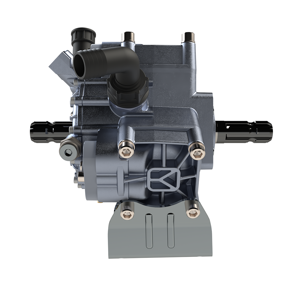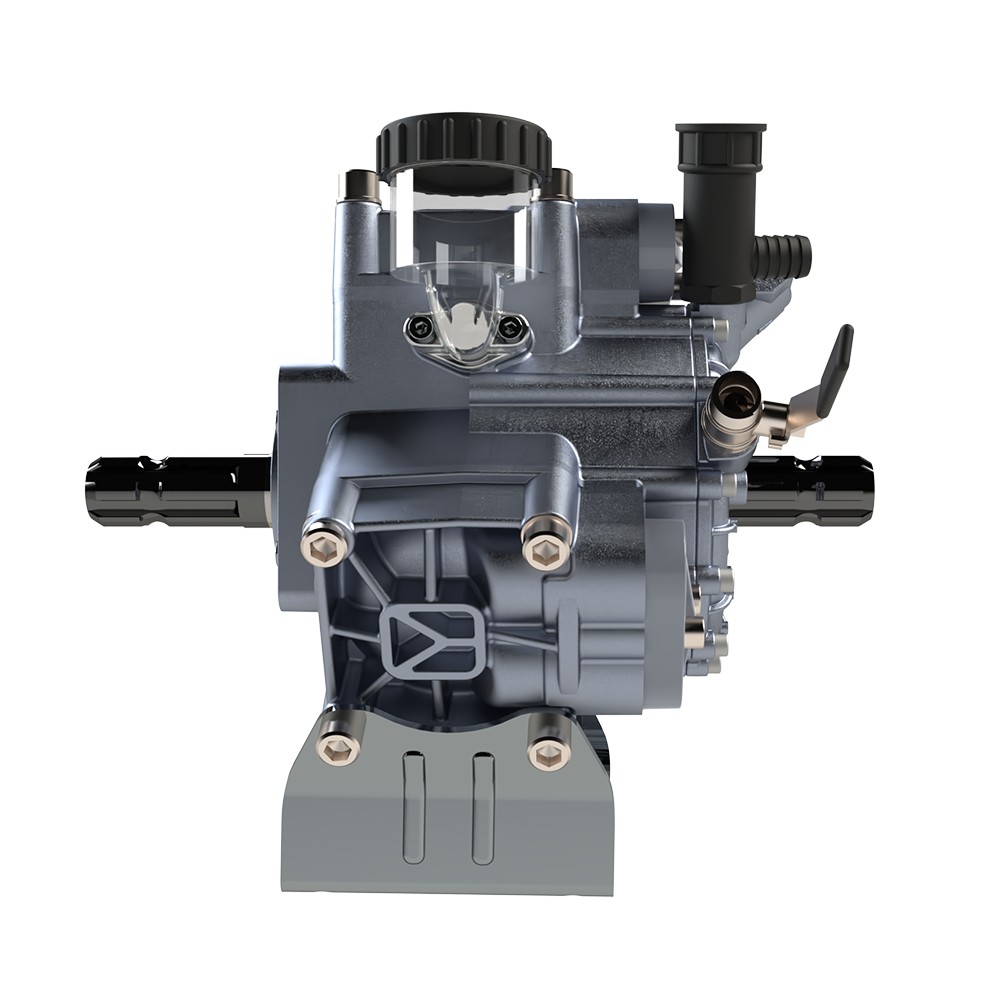 Çift frezeli pompalar şanzımanlı turbo makinelerde kullanılır. Bu sistemde hareket önce traktörden pompaya iletilir. Pompa çıkışından sonra şaft aracılığıyla şanzımana, oradan da makineye aktarılır. Şanzıman, bu süreçte devri ayarlayarak makinenin ihtiyaç duyduğu uygun hızda çalışmasını sağlar.